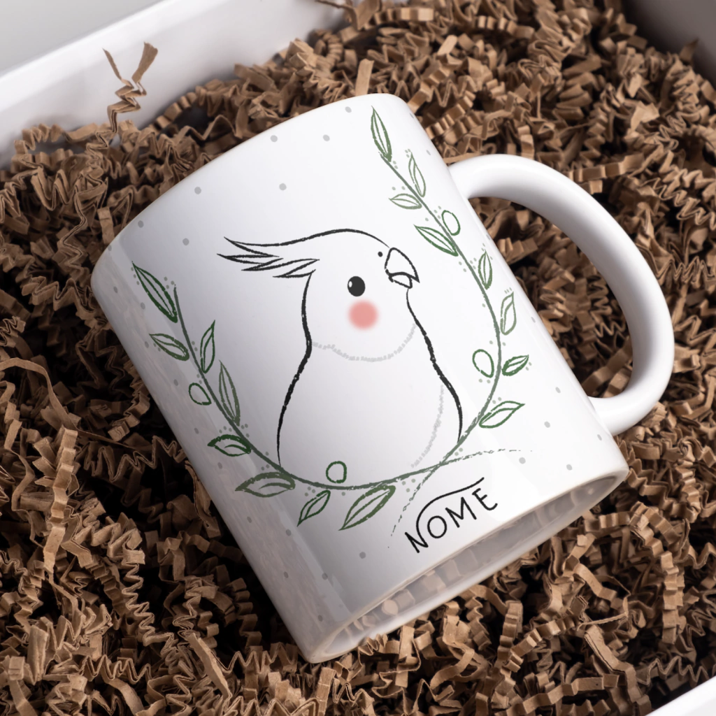 CANECAS DE CALOPSITA COM NOME - Personalize com o nome da sua calopsita 🐦✨