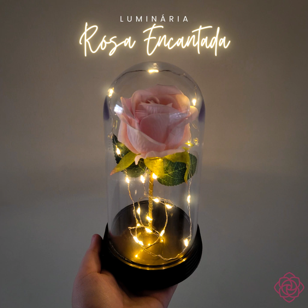 Luminária Cúpula (Redoma) “Rosa Encantada” - Inspirado no Filme/Livro “A Bela & a Fera”
